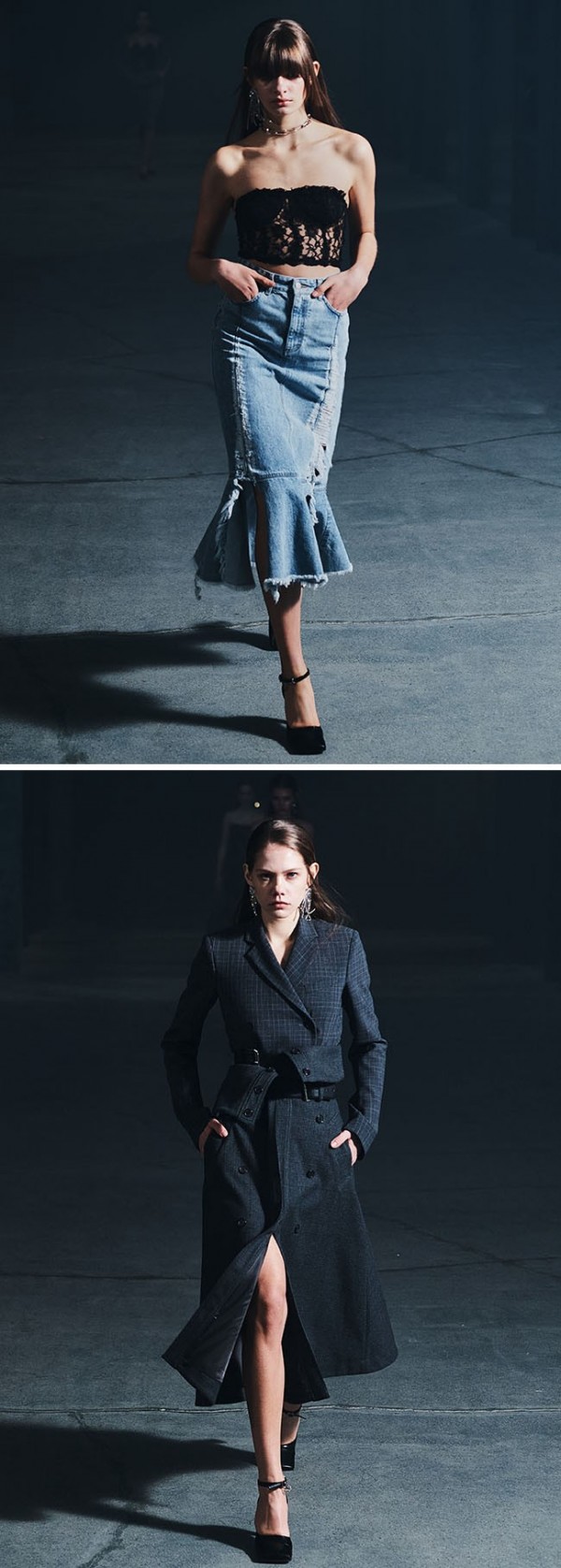 보텀은 데님 팬츠와 스커트, 점프수트가 중심을 이루었다. 입던 옷을 다시 꺼내어 입거나 리폼한 듯이 표현됐다.