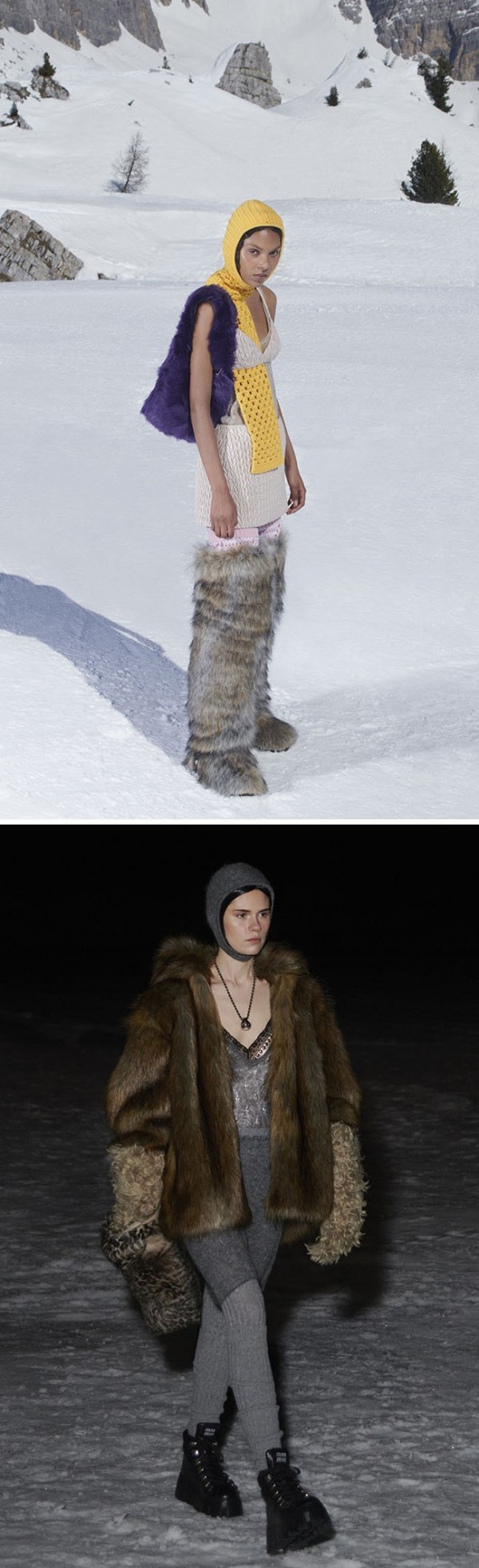 기능적이면서 패셔너블한 아우터가 강조됐는데, 짧은 기장의 퍼와 패딩이 중심을 이루었다.