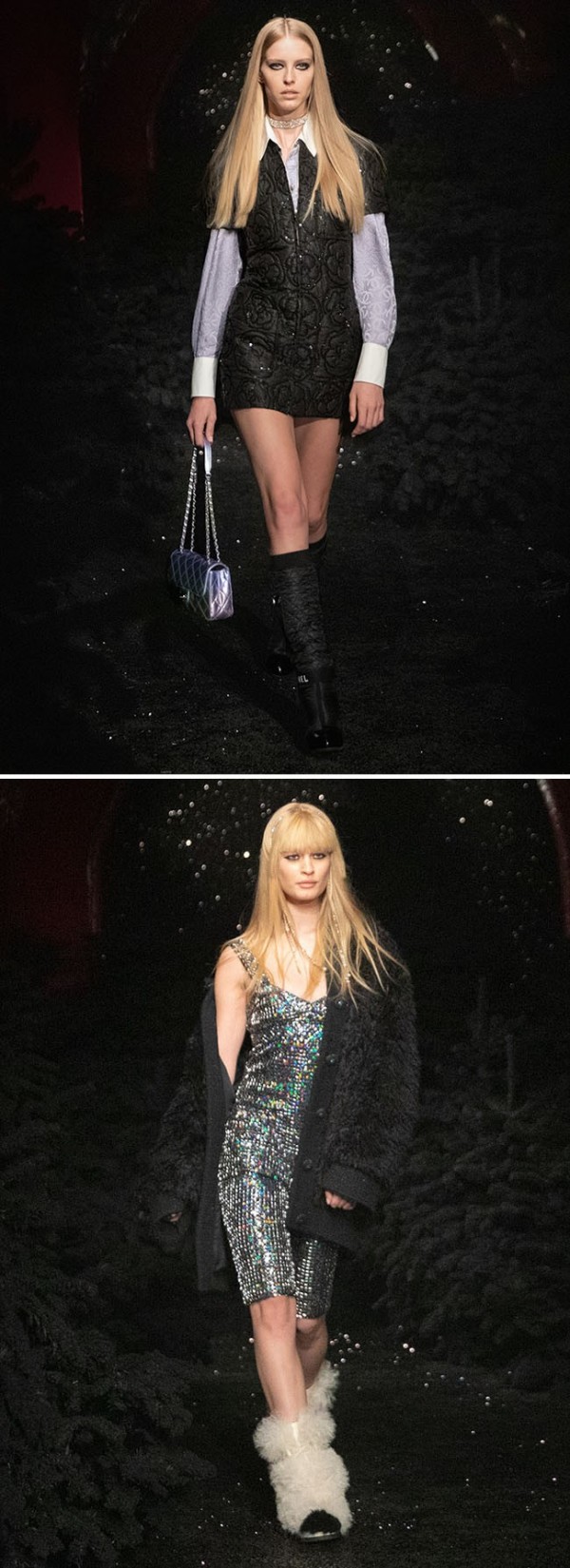 엘리자베스 여왕풍으로 연출한 스카프, 틴셀이나 양털을 적용한 스톨, 장미과 가시 디테일의 플랫 슈즈, 실버 부츠 등이 대표적이다.