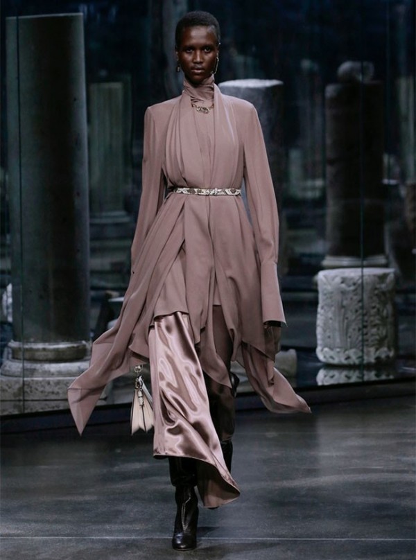 실루엣에 집중할 수 있도록 컬러를 절제하고 소재감을 통해 보다 다채로운 뉘앙스로 표현했다. 부드럽고 세련된 톤으로 표현된 얼스 컬러와 블랙&화이트가 중심을 이루고 로즈 베이지, 크림 베이지, 모브 브라운, 올리브 토프, 카멜 등이 대표적이다.
