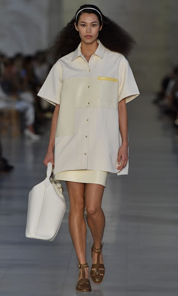 수트와 세트가 중심을 이루는데 전형적인 테일러드 스타일은 배제하고 유틸리티적인 워크웨어에 테일러링을 결합하는 방식으로 표현했으며 직선적이고 구조적인 실루엣이 강조되는데 유연도가 다른 소재를 적용하여 뉘앙스의 변화를 유도하고 미니 기장, 탱크 톱, 밴도우을 활용하여 젊고 경쾌하게 표현했다.