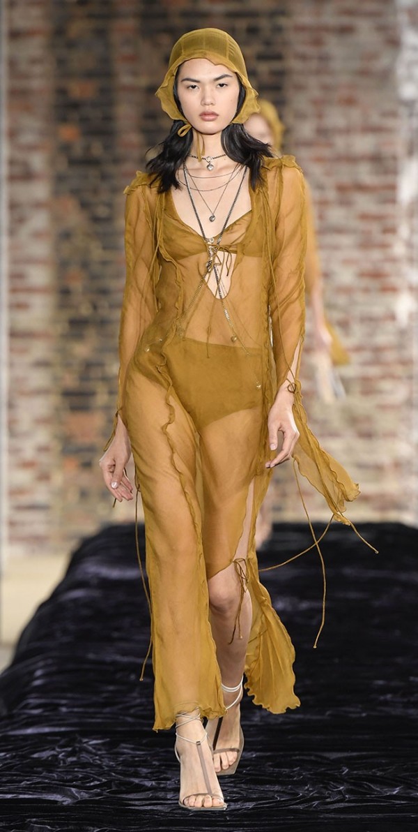 지난 시즌의 듀벳 드레싱과는 대조되는 섹시한 스타일. 란제리 드레싱과 데이웨어의 절충을 바탕으로 전개되는데 요즘의 느낌을 더해 쿨하게 마무리. 란제리에서 가져온 요소는 디테일적으로 활용되며 해체주의적이거나 업사이클링한 듯이 표현되는 것이 특징.