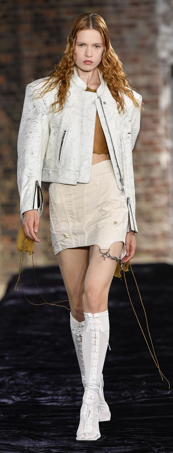 아우터는 발마칸 코트와 바이커 재킷이 대표적. 보텀은 슬림 팬츠, 호블 스커트, 미니 스커트 등이 제안되며 레기룩을 연출.