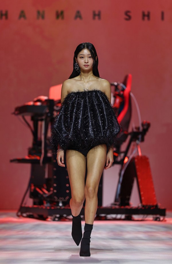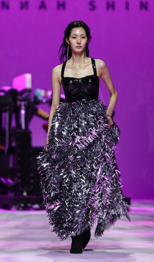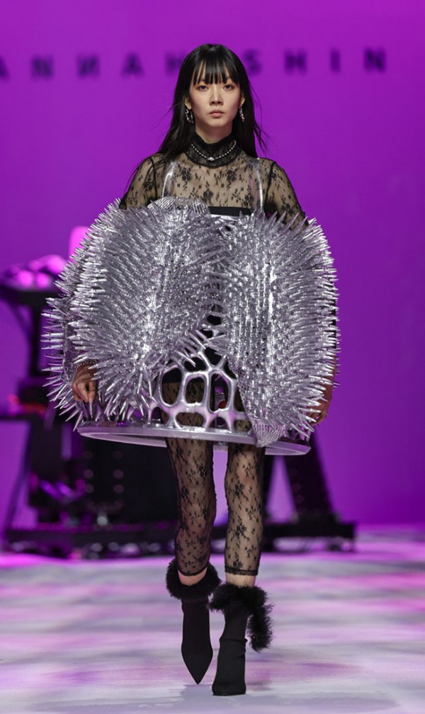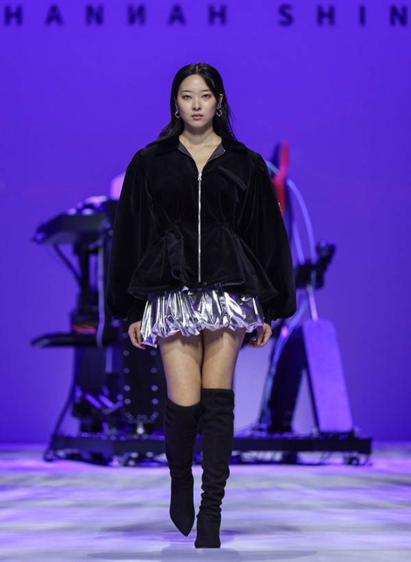 Under HANNAH SHIN's slogan, 'Glamorous Sustainable Technique', a dual runway between technology and actual models will be held in a glamorous mood and silhouette, and more than 70% of the fabric is made up of recycled/upcycled fabric. As a new designer, I am not bound by the existing framework, but my characteristic is that I try to develop creative fabrics and expression techniques through fusion with new scientific technology based on traditional techniques.