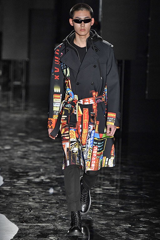 소재는 울과 신세틱, 밀도감 있는 저지 등을 이용한 다양한 수팅 소재부터 래더와 기능적인 나일론 등이 비교적 모던하게 전개되며 울 수팅 , 포플린, 실크, 개버딘과 같은 익숙한 것들부터 퍼와 글로시한 래더까지 폭 넓게 활용되었다. 또 나일론과 플리스, 워크웨어 코튼, 데님 등 실용적인 면이 강조되며 일부는 코팅 가공 등이 더해져 새롭게 표현됐다.