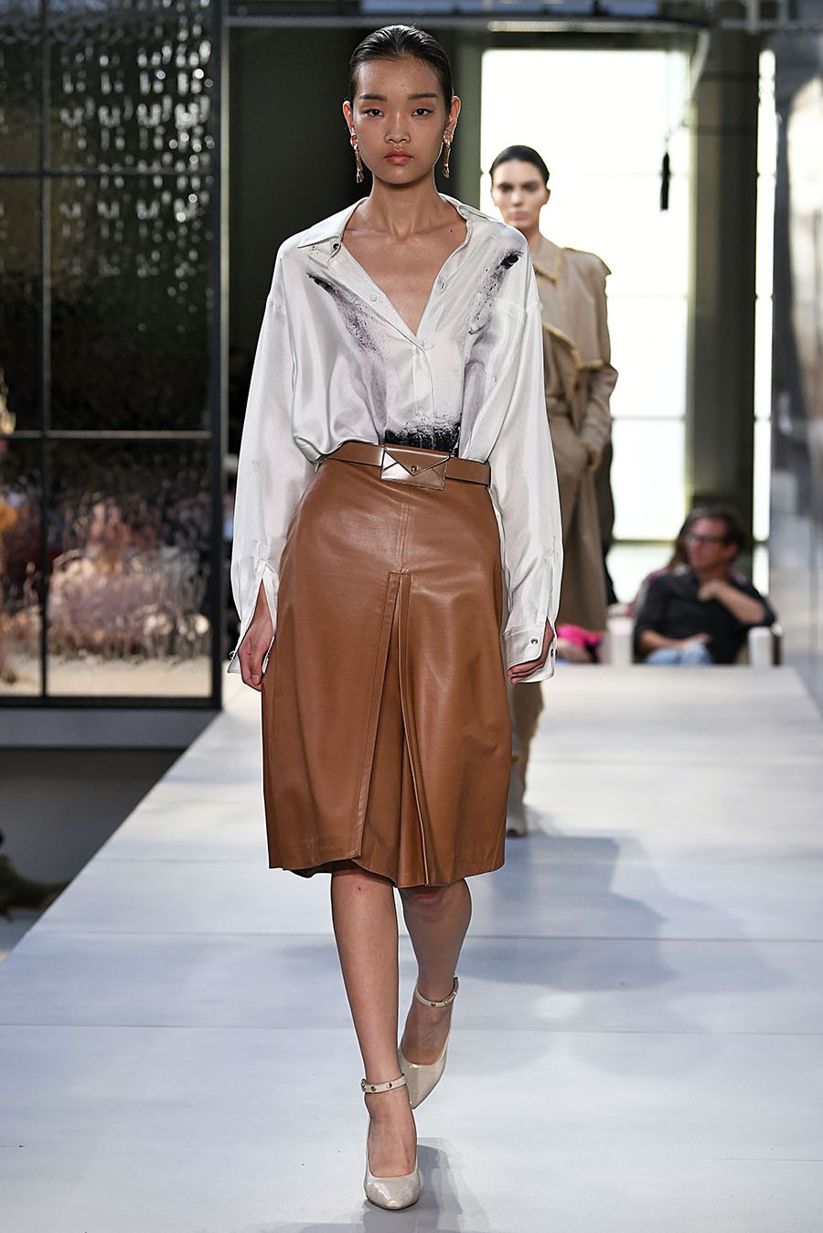 트렌치 코트는 다채롭게 변주된다. 슬림하고 구조적인 실루엣부터 A라인의 걸리쉬한 드레스 코트 스타일까지 제안되는데 오버 사이즈를 의도적으로 배재한 것이 특징이다.