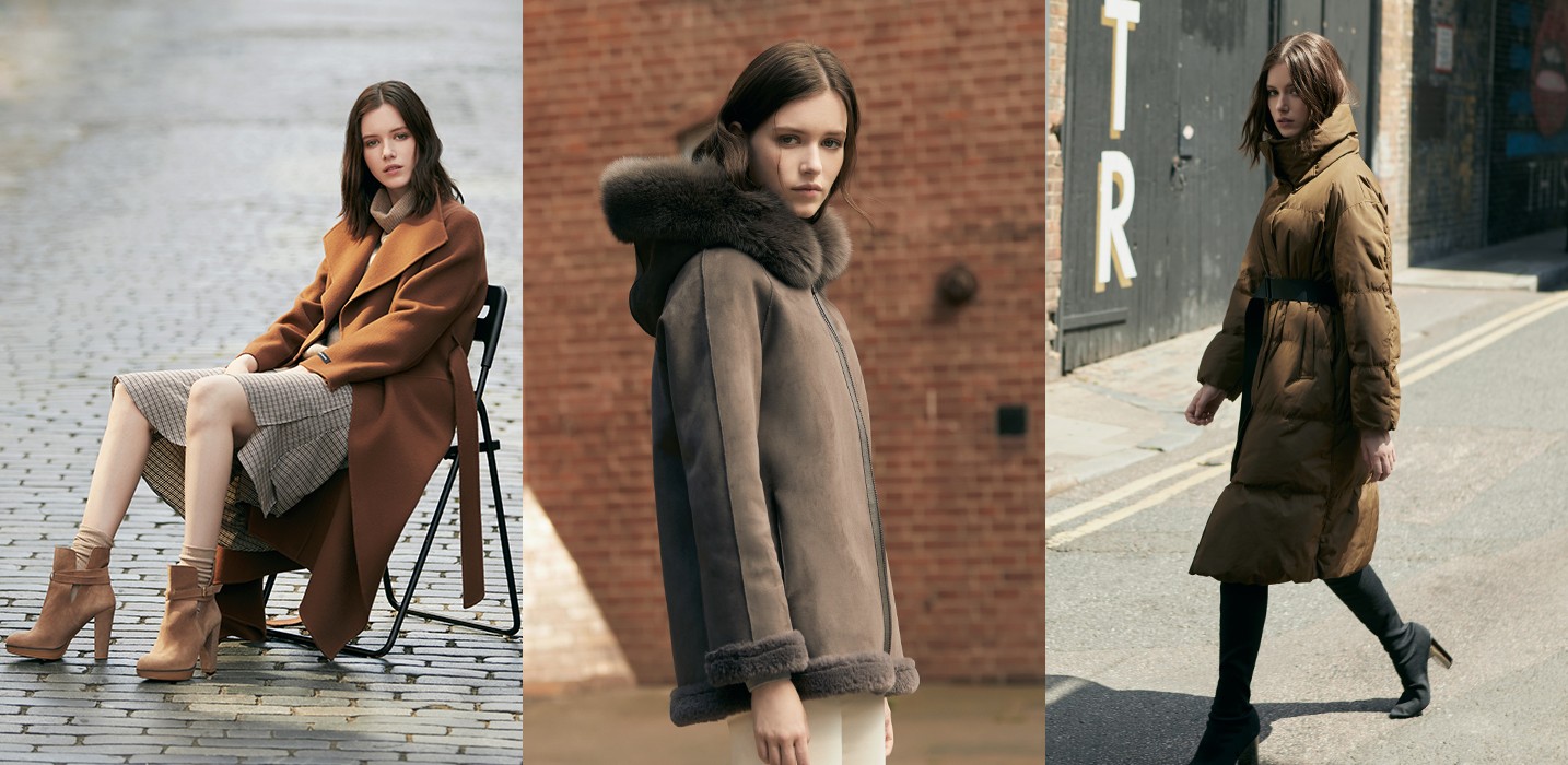 브라운은 따뜻한 느낌을 주는 컬러로 추운 겨울 아우터로 활용하기 좋다.