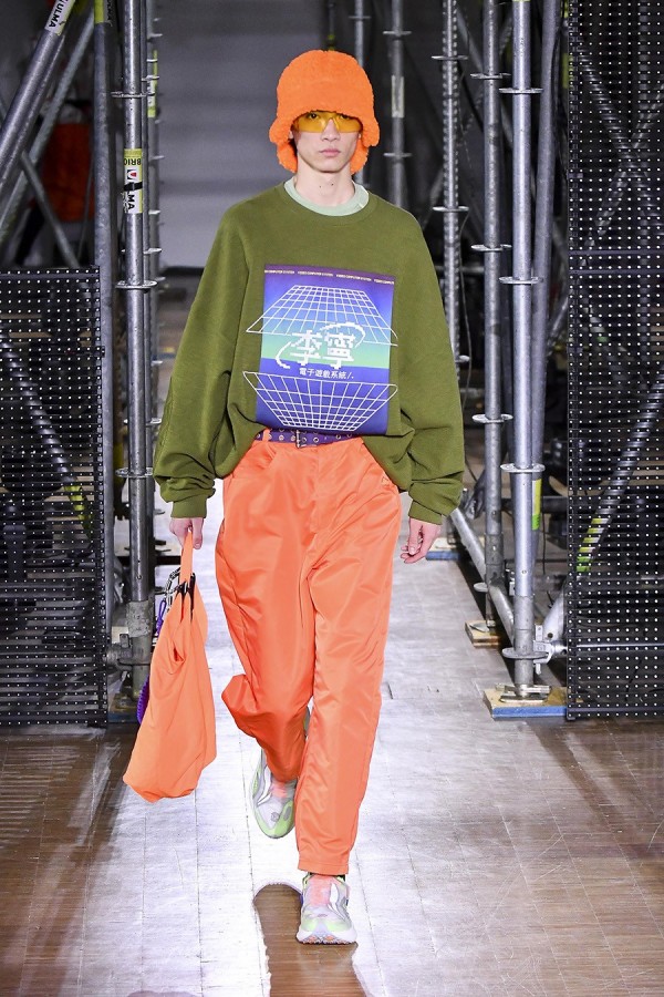 그리고 원색을 중심으로 복고적이면서도 테크니컬한 느낌을 줄 수 있는 형광의 느낌이 가미됐는데 퍼플 블루와 네온 그린, 오렌지, 레드와 블루 등이 블랙과 그레이, 네이비 등의 컬러와 함께 활용되며 한 스타일 안에서 강렬한 컬러 블록을 이루는 방식으로 적용됐다.
