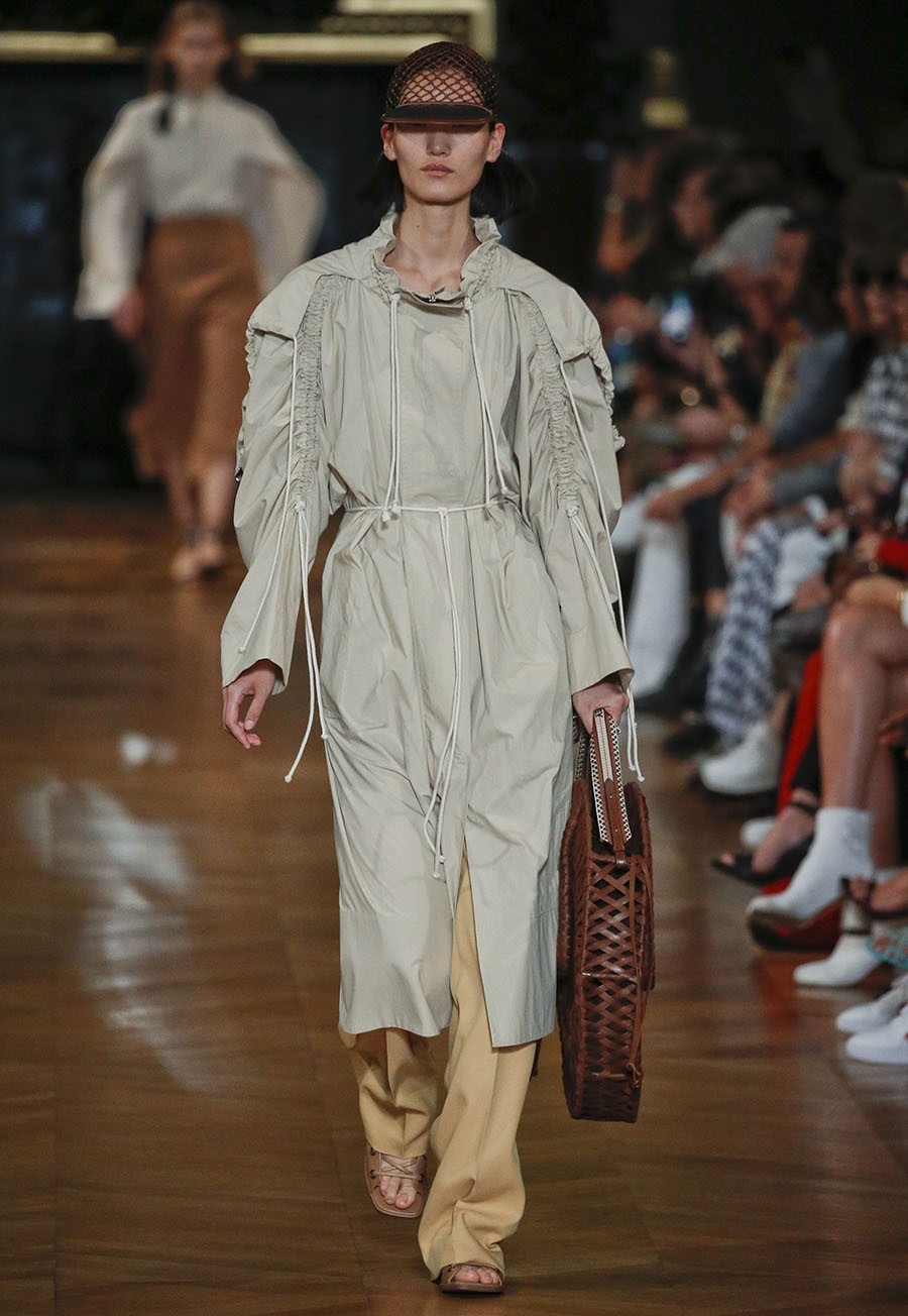 셰빌로 테일러링과 란제리 풍의 센슈얼 드레싱이라는 스텔라 매카트니의 시그니처를 바탕으로 스타일이 전개된다.