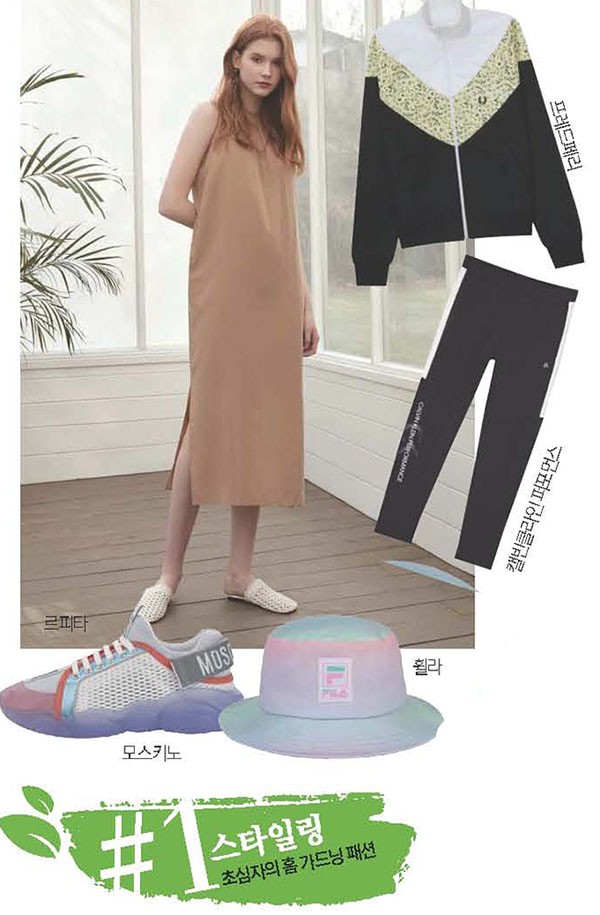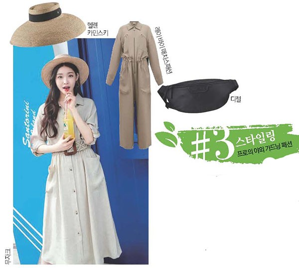 비교적 활동 범위가 좁은 베란다와 마당, 그 리고 옥상 등에서 홈 가드닝 하는 초심자의 패션과 집에서 벗어나 주말농장처럼 교외에서 식물을 재배하는 수준의 패션, 그리고 홈 가드닝 무드를 더한 데일리 룩 스타일링을 제안한다.