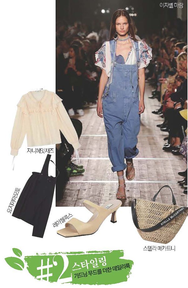 더불어 홈 가드닝 활동에 걸맞은 룩이나 데일리 룩에 활용이 가능한 변형된 가드닝 패션으로 편안하면서도 스타일리시하게 스타일링을 할 수 있다.