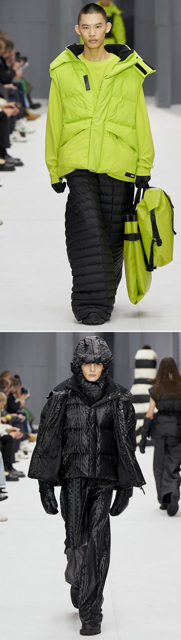 아웃도어룩에서도 그레이 톤온톤 매치로 테크니컬하면서도 세련된 룩을 완성한다.