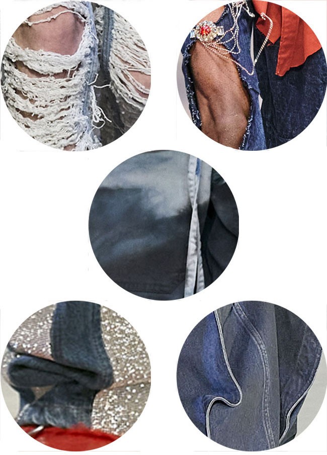 옴브레 다잉 및 찢어진 듯한 마감, 과감하고 볼드한 장식 등 화려한 효과가 데님에 필수적으로 등장하고 있는 추세다.