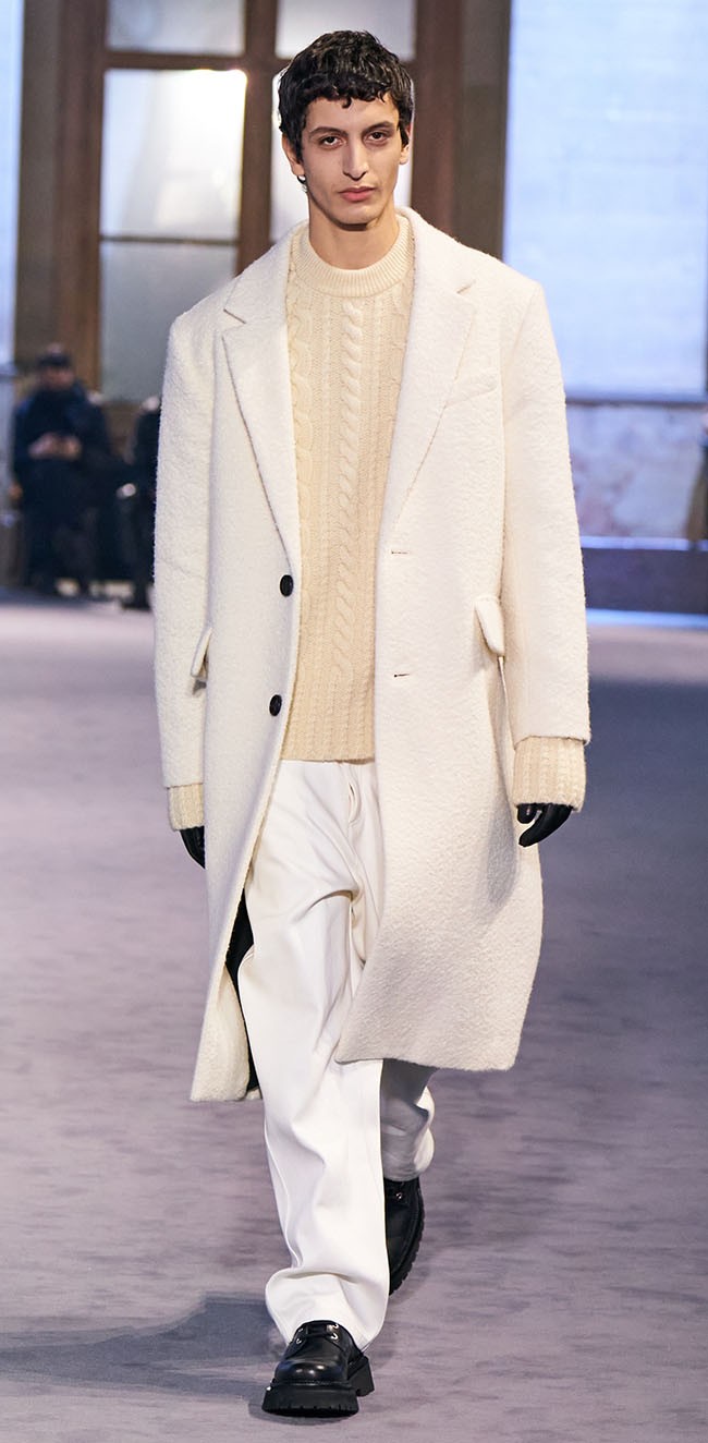 유연한 가죽소재를 활용한 가죽 코트와 시어링 에비에이터 스타일 코트가 다양하게 등장하였고, 가죽소재 자체의 고급스러움을 살린 아이템으로 세련된 오피스룩 및 캐주얼 스타일을 완성한다.