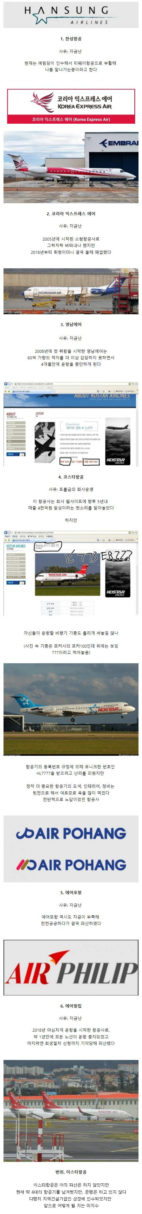 한국에서 사라진 항공사들