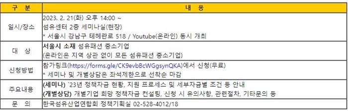 섬유패션업계 중소기업 정책자금 활용 설명회 (02/21 ~ 02/21)