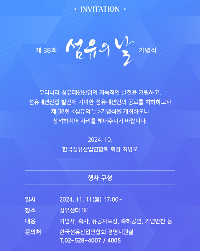 제38회「섬유의 날」기념식 (11/11 ~ 11/11)