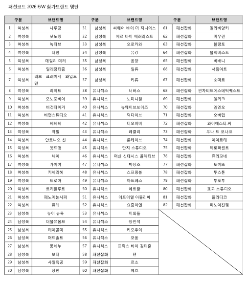‘패션코드 2026 F/W’ 참관을 원하는 바이어 및 프레스는 공식 홈페이지(www.fashionkode.com)를 통해 사전 등록할 수 있으며, 행사 기간 현장 등록도 가능하다. 자세한 사항은 홈페이지 및 인스타그램(@fashionkode_official)을 통해 확인할 수 있다.