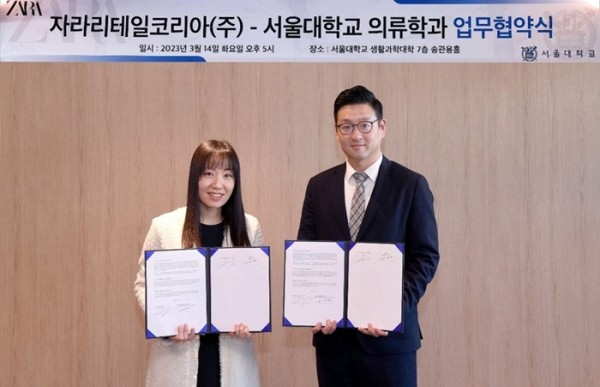 자라리테일코리아(대표 송재용, 이하 자라)는 지난 14일 서울대학교(총장 유홍림) 의류학과와 교류 협력 및 전문인력 양성 등을 위한 업무협약(MOU)을 체결했다.