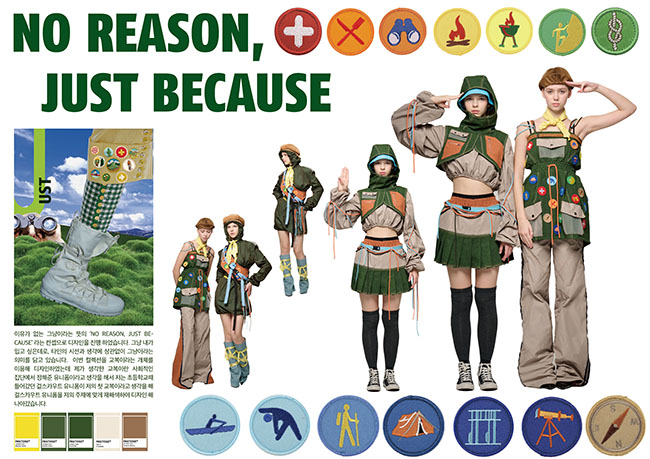 특히 이번 공모전에서 은상을 수상한 이주현 학생은 ‘NO REASON, JUST BECAUSE ’를 주제로 오래된 걸스카우트 유니폼을 트렌디하게 재해석하여 여성캐주얼에 잘 접목했으며, 상품성까지 잘 갖추었다는 평가를 받았다.