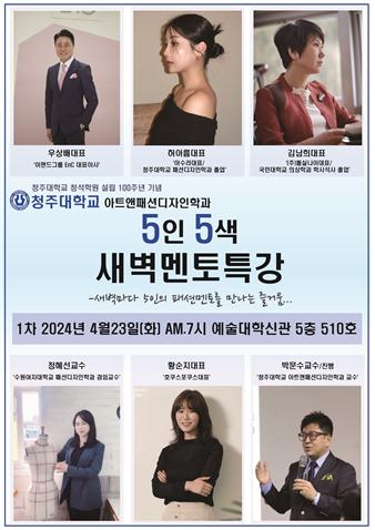 청주대학교(총장 김윤배) 예술대학 아트앤패션디자인학과는 학교법인 청석학원 설립 100주년 기념 새벽 멘토 특강을 갖는다.