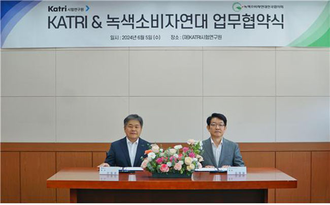 KATRI시험연구원(원장 신동준, 이하 카트리)은 녹색소비자연대전국협의회(대표 김재철, 이하 녹소연)와 지난 5일 소비자권익 및 제품 안전관리 향상을 위한 업무협약을 체결했다.