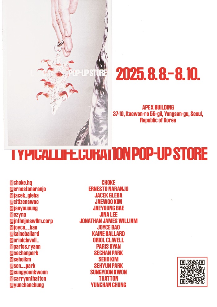 패션은 이제 대중의 욕망을 반영하는 단계를 넘어, 욕망을 선취하고 다양한 반문화를 소비할 수 있는 이미지로 전유한다. TYPICALLIFE.CURATION은 이러한 산업구조 바깥에서, 과거(세컨핸즈) - 현재(디자이너 브랜드) - 미래(학생과 신진 디자이너)의 패션을 편집숍 형식으로 아우르며, 대중 패션의 시간성을 한데 묶는다.