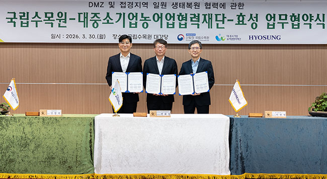 효성이 국립수목원·대중소기업농어업협력재단(상생협력재단)과 함께 DMZ 및 접경지역 생태복원 협력을 그룹 차원으로 확대한다.