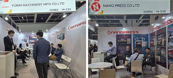 ◆가죽가공 기계관에 개발부스로 참가한 유림산업 (사진 왼쪽), 나노프레스 부스(사진 오른쪽).