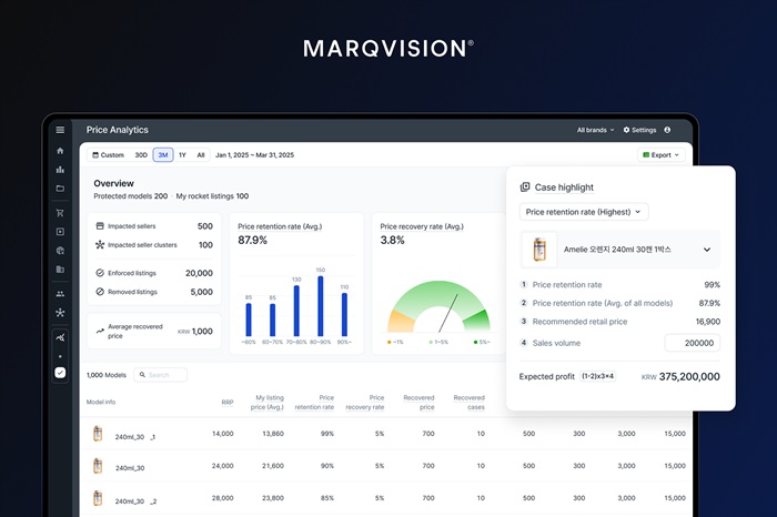 AI 기반 IP 통합 솔루션 기업 마크비전(대표 이인섭)은 온라인에서 무분별한 가격 할인으로 브랜드 가치를 훼손하는 상품과 판매자를 탐지하는 ‘가격 모니터링’ 서비스에 대규모 업데이트를 적용했다고 9일 밝혔다.