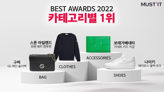 온라인 명품 커머스 머스트잇(대표 조용민)이 올해를 마무리하며 ‘2022 베스트 어워즈’를 실시했다. 2022 베스트 어워즈 상품은 올 한 해 머스트잇 판매 데이터를 바탕으로 선정했다. 선정 품목은 의류와 신발, 가방, 액세서리 등이다.