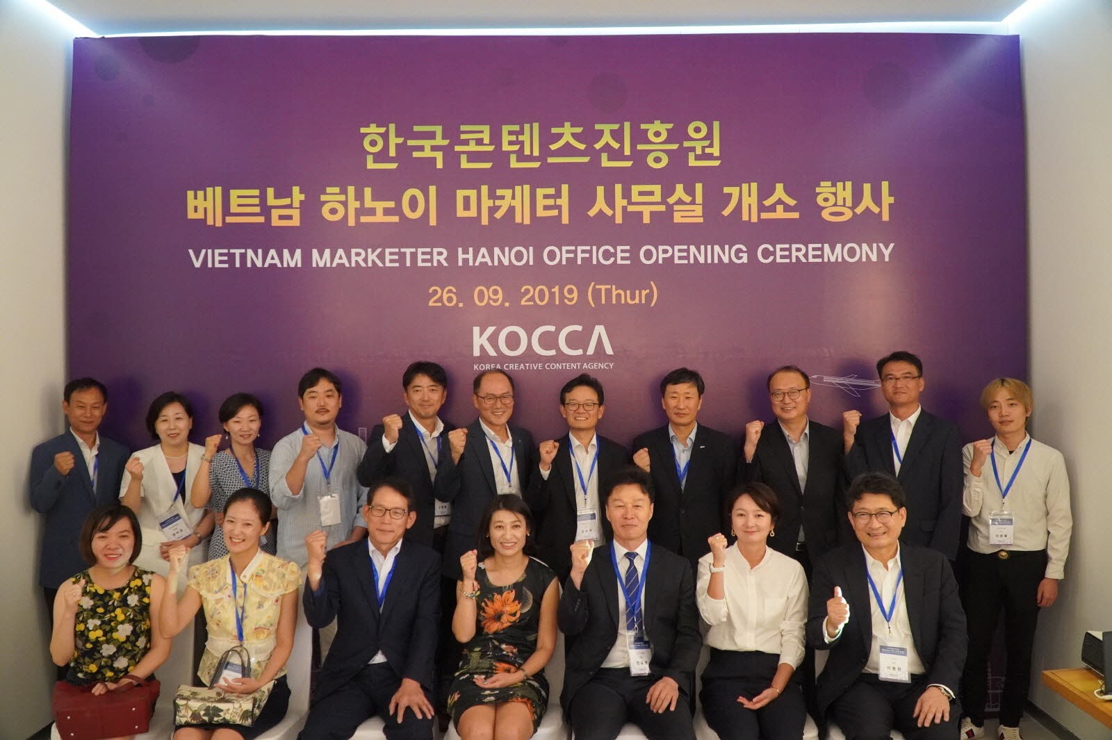 이날 개소행사에는 최근 한류 콘텐츠 공동제작에 박차를 가하고 있는 베트남 대표 방송국 중 하나인 ▲VTCK(VTC12) 전교석 대표를 비롯해 인터넷·정보통신과 5G사업 진출을 추진 중인 ▲SK 고종환 지사장 ▲스타트업 육성기업 르호봇 이현규 부장 등 업계 관계자 이외 ▲대한상공회의소 윤옥현 소장 ▲한인회 이산 편집장, 그리고 베트남 내 글로벌 콘텐츠 행사개최를 통한 시장개척에 주력하고 있는 ▲COEX 이동원 사장 ▲전시주최자협회 조민제 회장 등도 참석하여 눈길을 끌었다.