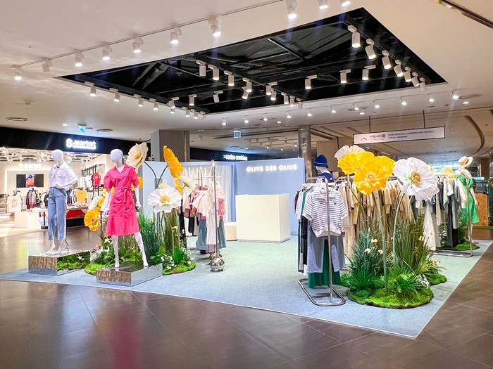 올리브데올리브가 처음 진행하는 이번 팝업스토어로 패션을 사랑하는 여성들에게 환상적인 경험과 특별한 혜택을 제공하기 위하여 컨셉추얼한 자이언트 플로럴로 공간을 가득 채운 것이 특징이다.