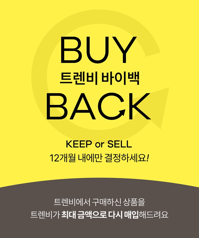 상품 구매 확정 시기로부터 3개월, 6개월, 12개월마다 바이백 비용이 달라지며, 바이백을 통해 트렌비의 원하는 상품을 다시 자유롭게 구매할 수 있다.