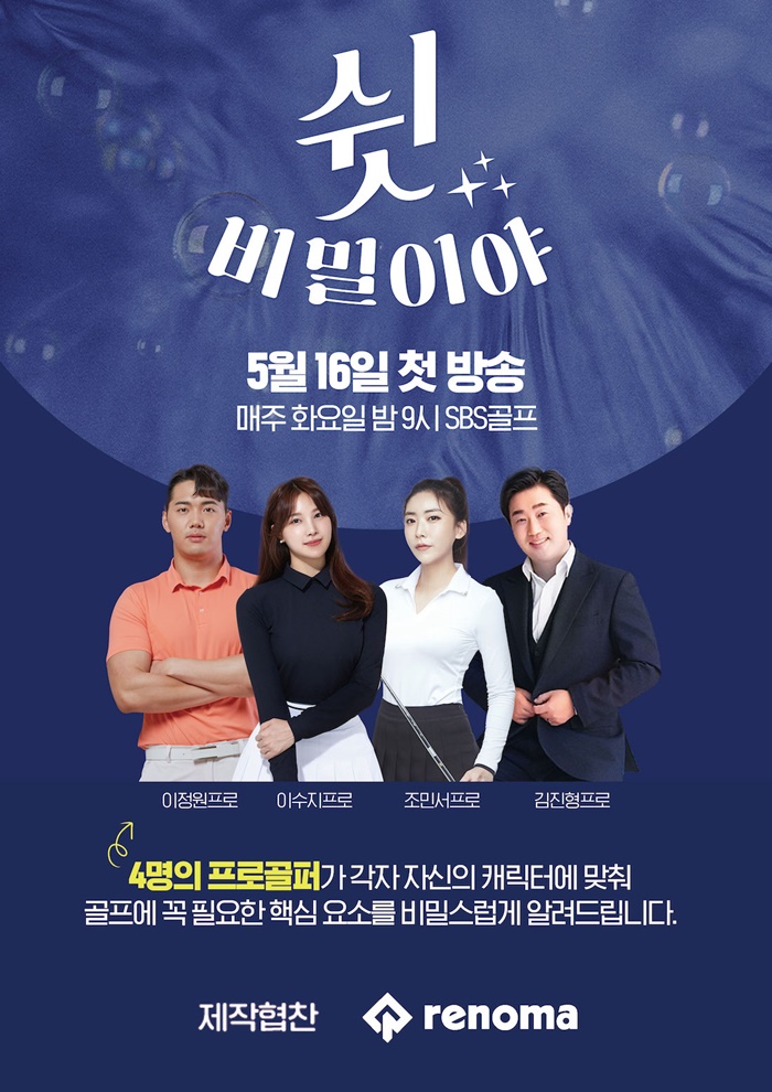 오는 5월 16일에 첫 방송되는 ‘쉿! 비밀이야’는 SBS 소속 프로와 JNGK 소속 프로 4명이 골프장 18홀을 직접 라운드하면서 프로들만의 각 홀별 공략법과 레슨을 시청자들에게 전달하는 골프 프로그램이다.