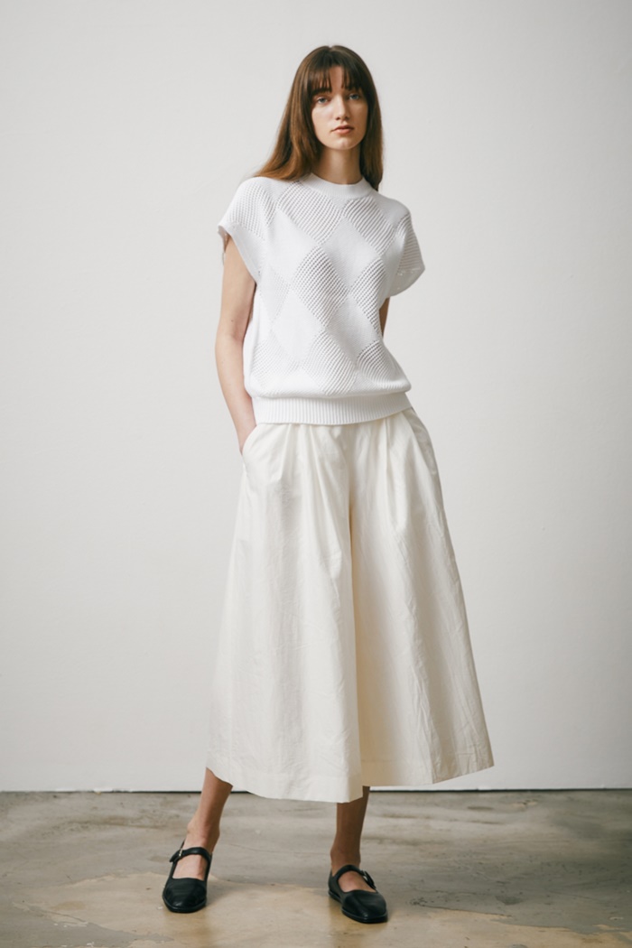 델라라나의 이번 시즌 대표 제품인 플리티드 실크 코튼 팬츠는 면과 실크를 혼용한 얇은 여름용 팬츠로 가볍고 시원한 감촉이 특징이다. 은은한 광택이 고급스러움을 더하며 밴딩 디테일과 넓은 통으로 마치 치마 바지를 입은 듯 편안하고 세련된 실루엣을 연출할 수 있어 좋은 반응을 얻었다.