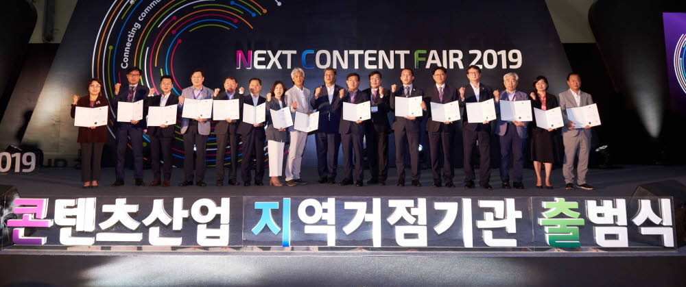 지난 10월 4일(금) 부산 벡스코 '넥스트콘텐츠페어 2019' 에서 <콘텐츠산업 지역거점기관 출범식>이 진행됐다.