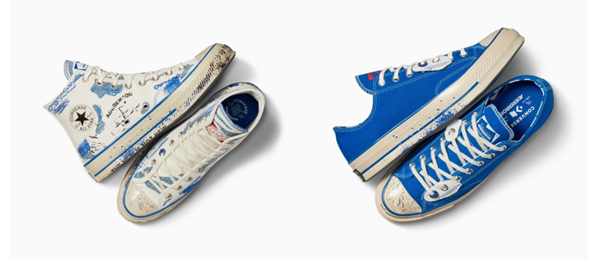 ‘척 70 하이(HI)’는 빈티지 데님에서 영감을 받은 폴리 트윌데님 소재의 어퍼를 사용했다. 거친 오버레이와 아더에러의 시그니처인 블루 컬러를 포인트로 하는 엠보싱으로빈티지한 느낌을 완성했으며커스텀 라이선스 플레이트와 아더에러 앵클 패치 등 콜라보레이션 로고가 돋보인다.