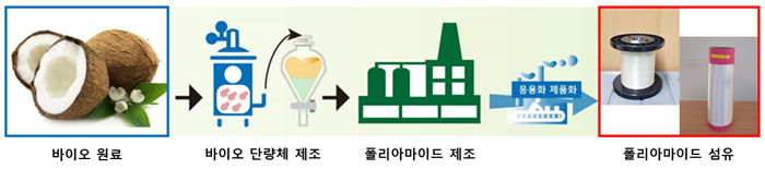 해당 기술은 기존 석유계 폴리아마이드 고분자 제조공정과 비교할 때 바이오 원료를 기반으로 하기 때문에 독성물질을 전혀 사용하지 않을 뿐 아니라 공정 중에 발생하는 이산화탄소 발생량이 상대적으로 적어 친환경 공법으로 제조된다는 장점이 있다.
