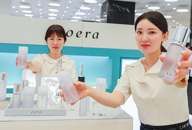 ◆서울 영등포구에 위치한 현대백화점 더현대 서울 '오에라(oera)' 매장에서 직원이 캘리브레이팅 컬렉션 신제품을 소개하고 있는 모습.