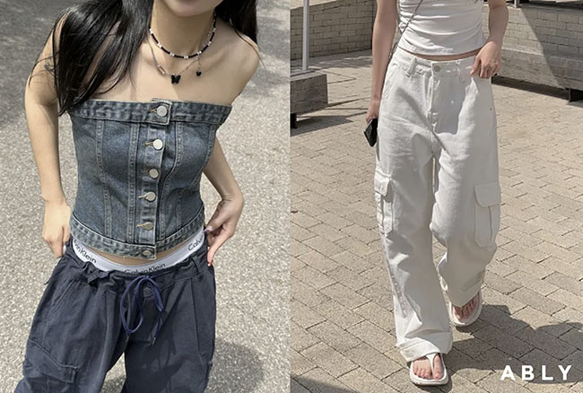지난해부터 꾸준히 이어지고 있는 ‘Y2K’ 트렌드가 올여름 페스티벌룩에도 스며든 모습이다. 페스티벌이 본격적으로 시작된 7월, 에이블리 내 ‘청 크롭탑’ 검색량은 전년 동기 대비 2,425%(25배), ‘데님 탑’은 전년 동기 대비 1,540%(16배)가량 대폭 증가했다. 넥라인과 소매가 없어 시원하면서도 복고 감성을 대표하는 ‘데님’ 소재로 Y2K 스타일 강조할 수 있어 인기를 끌고 있는 것으로 보인다. 함께 매치하기 좋은 Y2K 대표 아이템인 ‘카고치마’(755%, 8.5배)와 ‘카고바지’(380%, 4.8배) 검색도 대폭 늘었다.
