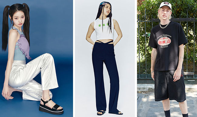 ◆사진제공: (왼쪽부터) 슈콤마보니 ‘코코 뉴 플랫폼’과 럭키슈에뜨 ‘럭츄 져지 스트랩 롱 팬츠’, 이로 ‘블랙 세인트 저맨 그래픽 반팔 티셔츠’. 록시크 룩엔, ‘블랙’ 아이템