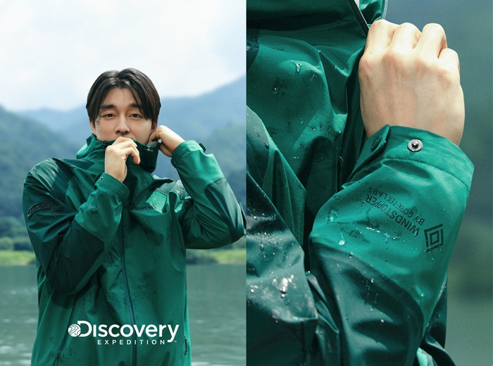 공유는 이번 디스커버리 화보에서 고급스럽고 세련된 아웃도어 무드에 어울리는 바람막이 스타일링을 보여주며, 디스커버리 ‘베르텍스 고어 윈드스포터 자켓 컬렉션’에 대한 기대감을 한껏 끌어 올렸다.