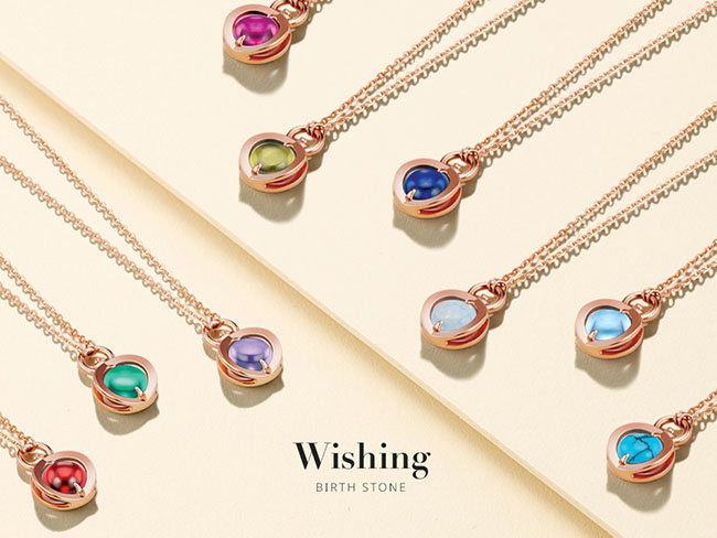 위싱벌룬 목걸이는 1월부터 12월까지 열두 달을 상징하는 탄생석을 디자인했다는 점에는 특별한 의미를 지닌다. 탄생석은 자신이 태어난 달을 상징하는 보석으로, ▲1월 가넷 ▲2월 자수정 ▲3월 아쿠아마린 ▲4월 화이트 ▲5월 에메랄드 ▲6월 문스톤 ▲7월 루비 ▲8월 페리도트 ▲9월 사파이어 ▲10월 오팔 ▲11월 토파즈 ▲12월 터키석 12종으로 구성된다.