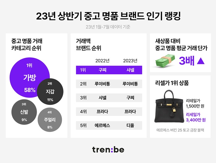 트렌비, 23년 상반기 중고명품 브랜드 랭킹 발표