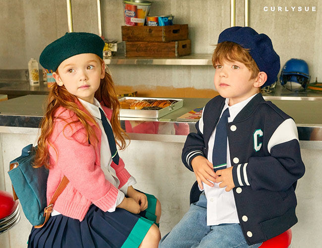 '컬리수'는 모던한 스쿨룩 컨셉의 가을 신상품을 선보였다. 네오플랜 소재의 ‘크루바시티점퍼’는 클래식한 디자인으로 성별 구분 없이 착용할 수 있다. 여기에 탈부착이 가능한 타이가 포인트인 ‘에센셜 프레피 셔츠’를 코디하면 세련된 프레피룩이 완성된다. 여아의 경우, 배색 플리츠 스커트와 빅카라 형태의 핑크색 니트 가디건 등 걸리쉬 아이템으로 사랑스러운 분위기를 연출할 수 있다.