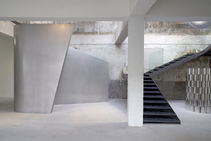 전시장 1층은 쿠론의 새로운 컬렉션 중 하나인 ‘뉴 트렌디’의 주력상품 ‘쉐이퍼 숄더백’을 형상화한 대형 메탈 조형물이 설치된다. 쿠론은 이번 시즌 컬렉션을 크게 ‘뉴 클래식(NEW CLASSIC)’과 ‘뉴 트렌디(NEW TRENDY)’로 이원화하여 전개하고 있다. ‘쉐이퍼 숄더백’은 1960년대 모더니즘 시대의 건축물, 조형물에서 영감을 받아 언발란스한 형태의 기하학적 디자인이 특징인 제품이다.