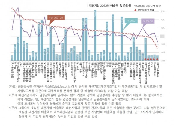 한편, 글로벌 명품기업 및 외자기업의 성장력이 한국 토종기업보다 실적향상이 두드러졌다. 패션기업 성장력을 분석한 결과, 루이비통코리아와 크리스챤디올꾸뛰르코리아를 포함해서 샤넬코리아, 나이키코리아, 랄프로렌코리아, 프라다코리아, 에르메스코리아 등 글로벌 명품기업들의 성장력이 한국기업보다 강화됐다.