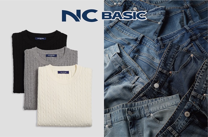 NC베이직의 대표적인 상품은 셔츠, 청바지, 스웨터 등 옷장에 꼭 필요한 아이템 ‘기본 10종’으로 구성됐다. 가을·겨울 시즌 주력 상품인 스웨터(1만9,900원), 기모 청바지(2만5,900원) 상품의 11월 기준 누적 판매량은 스웨터 1만5,000장, 기모 청바지 1만장을 기록했다.