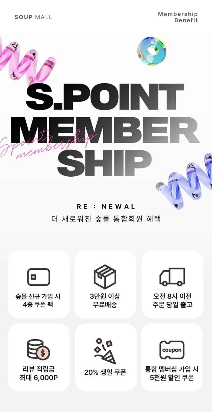 또한 고객에게 더 많은 혜택을 제공하기 위해 숲몰(SOUPMALL)의 온오프라인 통합 멤버십 서비스인 ‘S. POINT’ 제도를 리뉴얼했다.